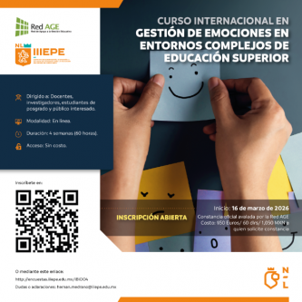 El IIIEPE de México, en colaboración con la RedAGE, presenta el nuevo curso internacional “Gestión de las emociones en entornos complejos de educación superior”. La iniciativa busca ofrecer una formación especializada dirigida a docentes, investigadores y estudiantes de posgrado interesados en desarrollar sus competencias emocionales en el ámbito universitario.