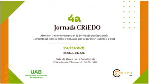 La UAB acogerá la 4ª Jornada CRiEDO sobre el abandono en la formación profesional El próximo 19 de noviembre de 2025, la Universitat Autònoma de Barcelona (UAB) celebrará la 4ª Jornada CRiEDO en la Sala de Graus de la Facultad de Ciencias...