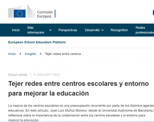 La European School Education Platform de la European Commission ha invitado al Dr. José Luís Muñoz Moreno, profesor de la UAB, en calidad de experto para participar en su Blog. La contribución realizada gira alrededor de la importancia...